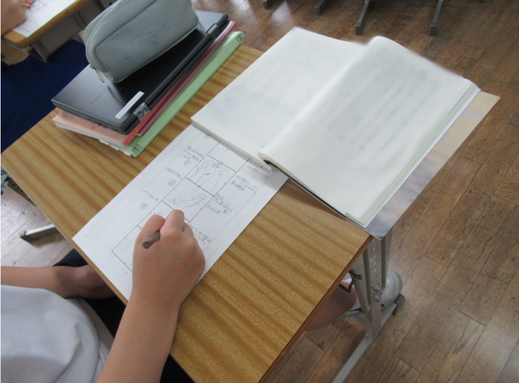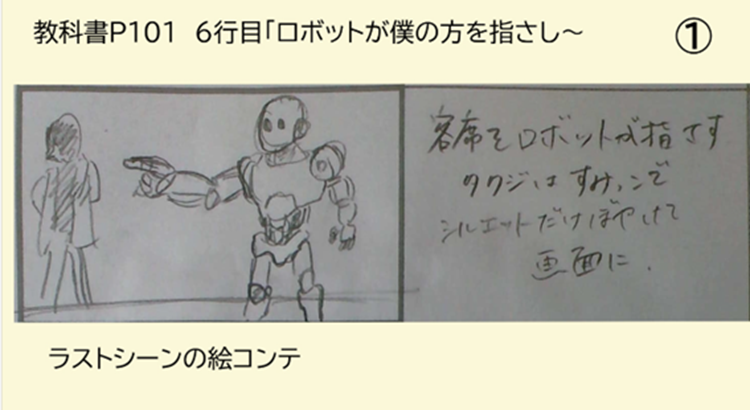 生徒は完成した絵コンテを撮影し、オクリンクプラスのカードに張り付けてみんなのボードに提出しました。