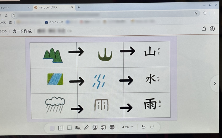 漢字の成り立ちを、オクリンクプラス上で「書きながら」学習する