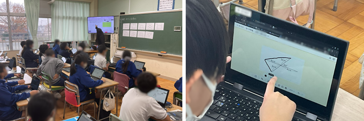 「オクリンクプラス」を使って体験的に四角形を学習し、「テストパーク」を使って単元の理解度を確認する
