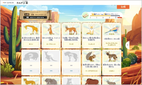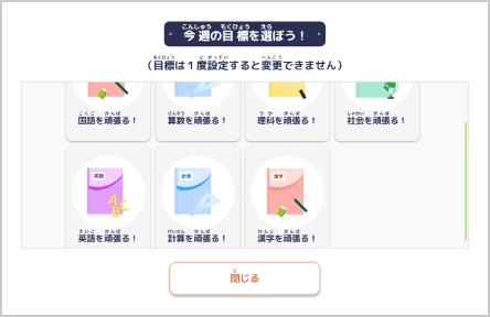 集めたお宝は自分専用の図鑑にコレクション。がんばりとともにだんだん完成されていく図鑑は、学習へのモチベーションを高めます。お宝と図鑑のテーマは数か月に一度更新されます。