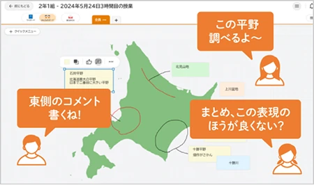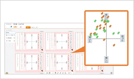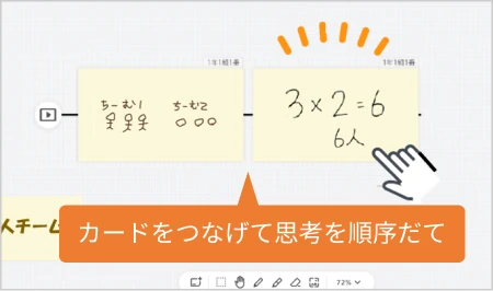 個人で考え、みんなと共有し、振り返る。 カードの行き来やリアクションも直感的で、友だちの考えを参考にしながら、自分の考えを深め、まとめ直すことができます。 思考・対話・表現を自然と繰り返し、子ども主体で学び合う授業の実現をささえます。