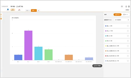 「キーワード集計」「選択肢集計」「ピン集計」の機能が搭載。提出されたものの傾向や多い意見を子ども自身で集計・グラフ化することができます。