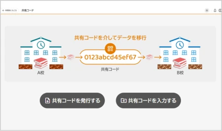 共有コード機能でカードを共有。先生の異動時の引継ぎや、いい事例を共有・取り入れることが可能です。