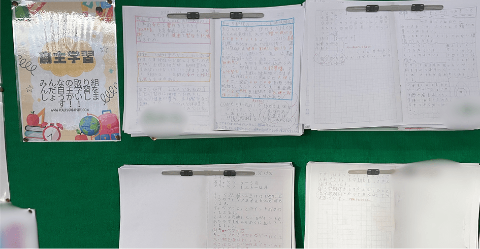 「〇〇さんの、このまとめ方の工夫がすごい」といった教師のコメントを添えて掲示しています。そうすることで、保護者が「先生がどこを見ているのか」を知る手がかりになります。